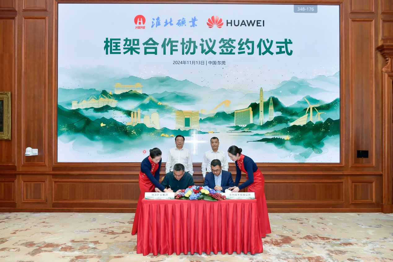 2024年11月13日,淮北礦業集團與華為技術有限公司在廣東東莞簽署框架合作協議。淮北礦業集團黨委副書記、總經理孫方,華為油氣礦山軍團生態合作總裁楊文池出席簽約儀式。淮北礦業副總經理聶政,華為安徽政企副總經理張鵬作為雙方簽約代表完成協議簽署。