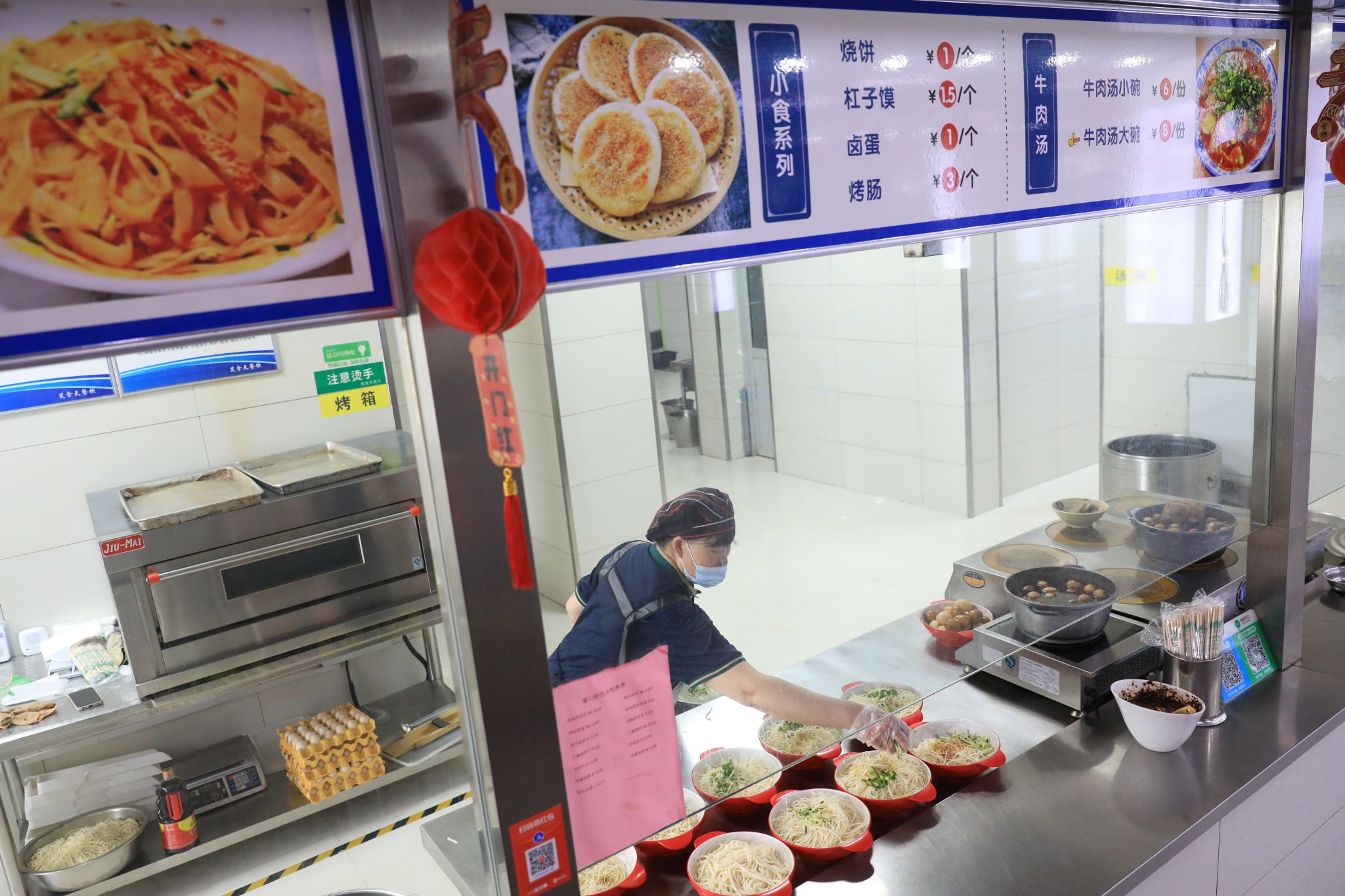 楊柳礦食堂內(nèi),窗明幾凈,空氣中飄散著食物的香氣。供應(yīng)給職工的涼面晶瑩剔透,瓜果堆疊得色彩繽紛,熱氣騰騰的羊肉湯散發(fā)著誘人的味道。然而,在這份“清涼”背后,是礦上為筑牢食品安全防線所做的細(xì)致功課。從食材采購(gòu)的源頭追溯,到加工過(guò)程的嚴(yán)格把控;從儲(chǔ)存環(huán)境的溫度監(jiān)控,到防蠅防鼠的物理隔絕……